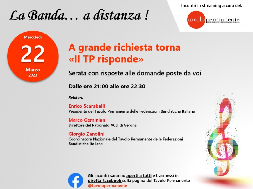 Gli incontri sono aperti a tutti e trasmessi in diretta Facebook sulla pagina del TP https://www.facebook.com/tavolopermanente/ ma anche sul canale Youtube del TP https://www.youtube.com/@tavolopermanente5417/videos dove potete trovare anche i filmati dei precedenti incontri.