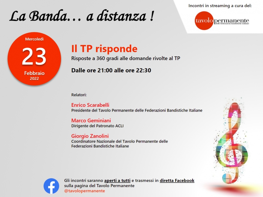 Gli incontri sono aperti a tutti e trasmessi in diretta Facebook sulla pagina del TP https://www.facebook.com/tavolopermanente/