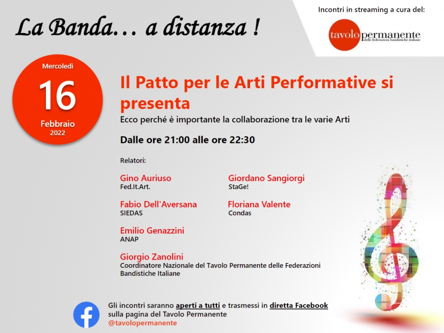 Mercoledì 16 Febbraio, con inizio alle ore 21,00, andiamo alla scoperta del PAP, ovvero il “Patto per le Arti Performative”, di cui il TP fa parte, e spiegheremo perché è importante il dialogo e la collaborazione tra le diverse Arti, e tra Professionisti e Amatori.