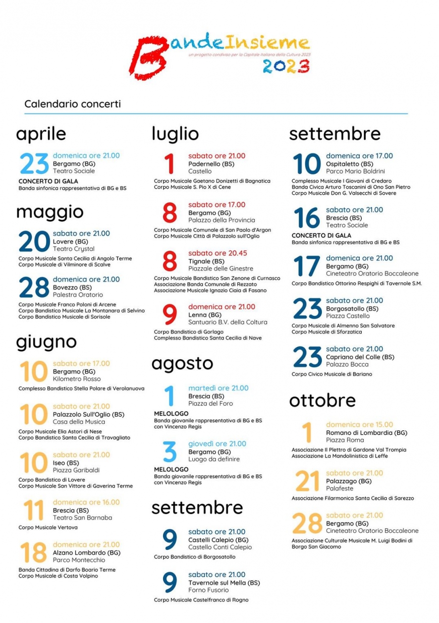 Entra nel vivo il ricco calendario degli eventi bandistici che si terranno in occasione di “Bergamo e Brescia Capitale della Cultura 2023”.