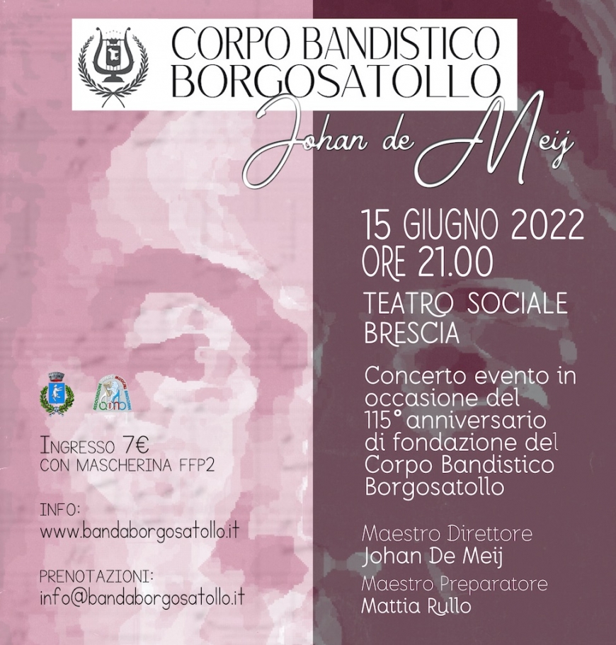 Mercoledì 15 Giugno 2022 alle ore 21,00, presso il Teatro Sociale di Brescia, il Corpo Bandistico di Borgosatollo riprende le proprie attività alla grande !