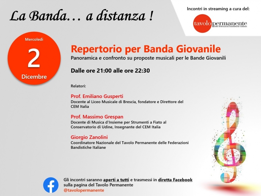 Mercoledì 9 Dicembre verrà trattato un argomento molto interessante e che merita di essere analizzato da parte delle Bande Musicali:
