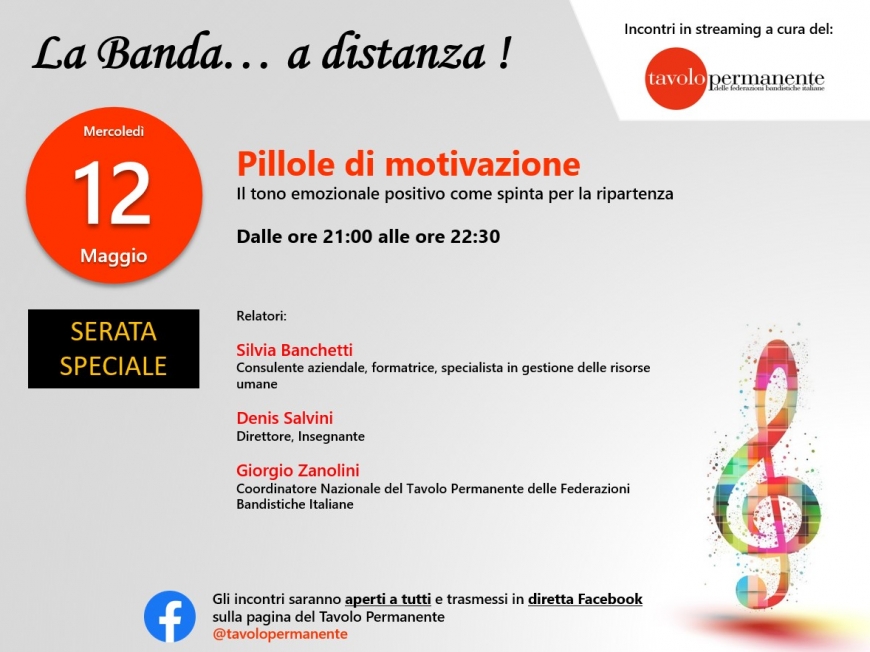 E’ per questo motivo che, nonostante gli appuntamenti previsti a “La Banda… a distanza !” si siano conclusi, abbiamo pensato di offrire un servizio importantissimo: coinvolgere un’esperta, consulente di grandi imprese internazionali, per dare dei consigli motivazionali utili per i nostri gruppi !